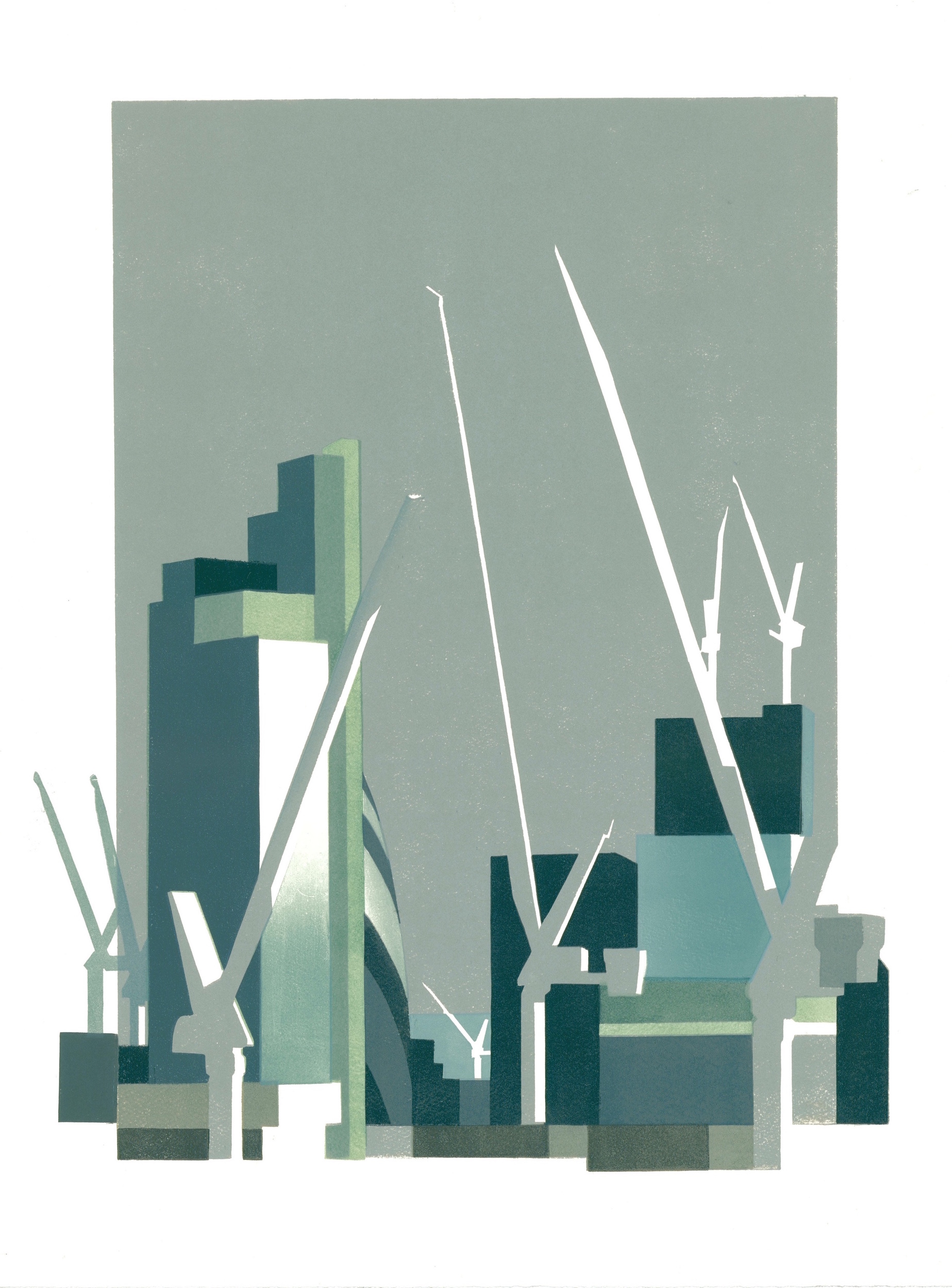 Grey Cranes and City